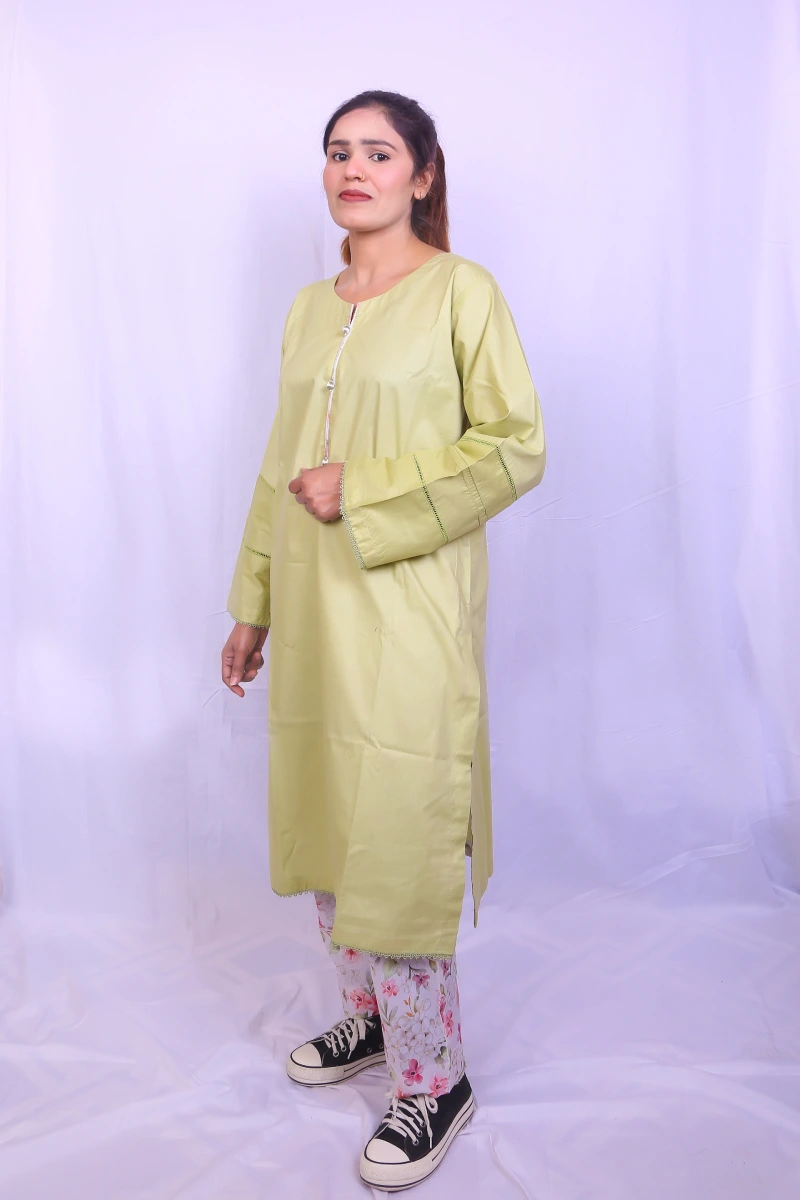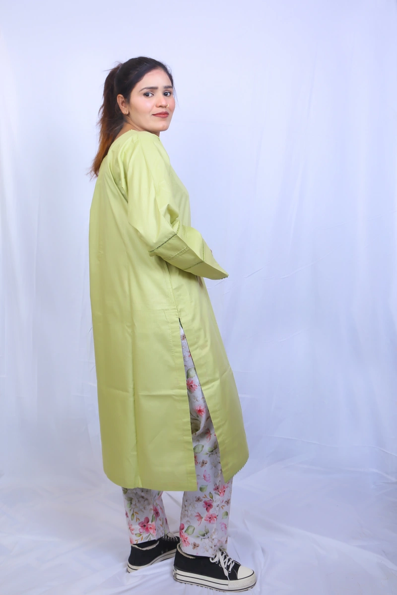Upgrade your wardrobe with this light green printed kurta trouser set, designed for style, comfort, and versatility. Made from premium lawn fabric, this breathable and lightweight outfit is perfect for casual wear, office wear, and everyday fashion. The elegant print adds a sophisticated touch, making it an ideal choice for modern women who love effortless elegance.